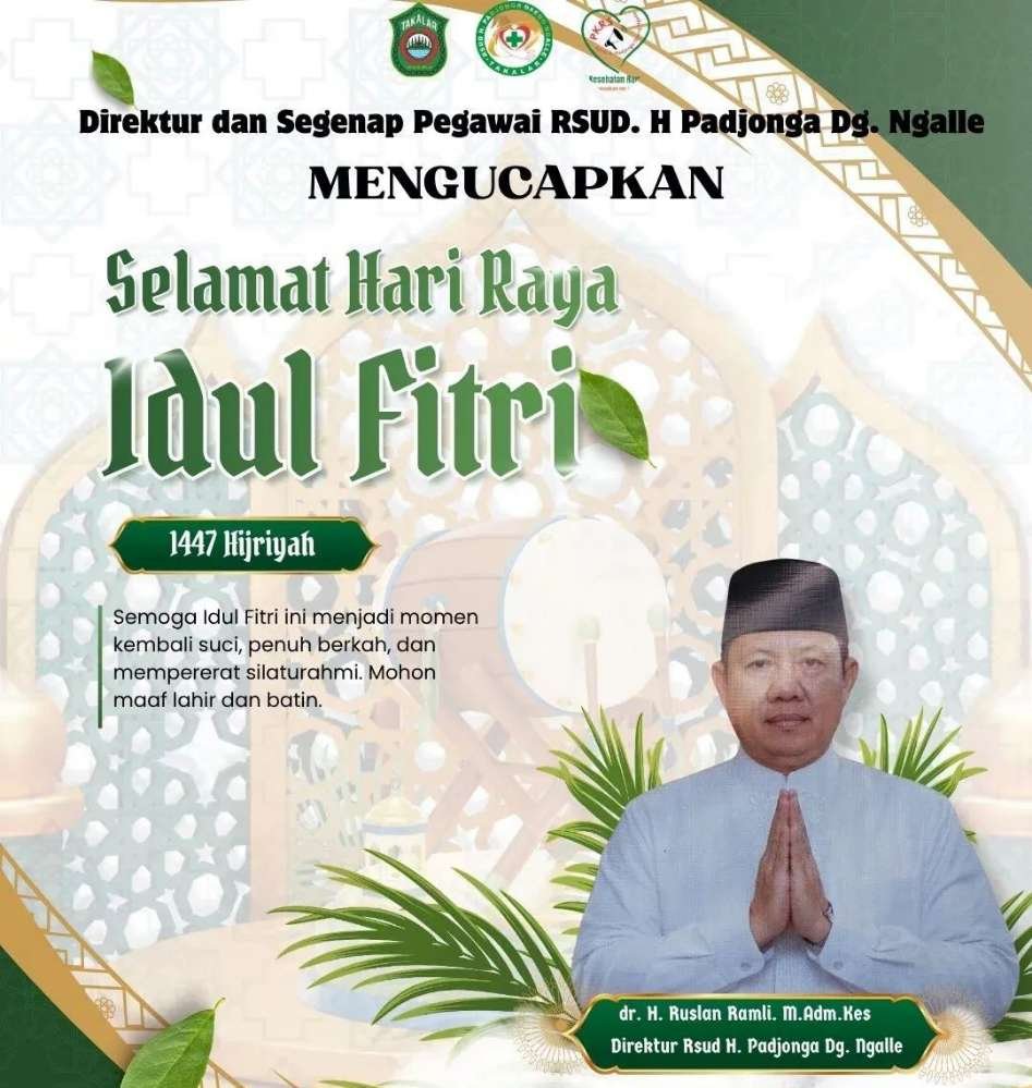 TAKALAR,Klikbacanews.id – Direktur RSUD H. Pajonga Daeng Ngalle, dr. H. Ruslan Ramli, M. Adm.Kes, menyampaikan ucapan Selamat Hari Raya Idulfitri 1447 Hijriah/2026 Masehi kepada seluruh masyarakat, khususnya di Kabupaten Takalar.